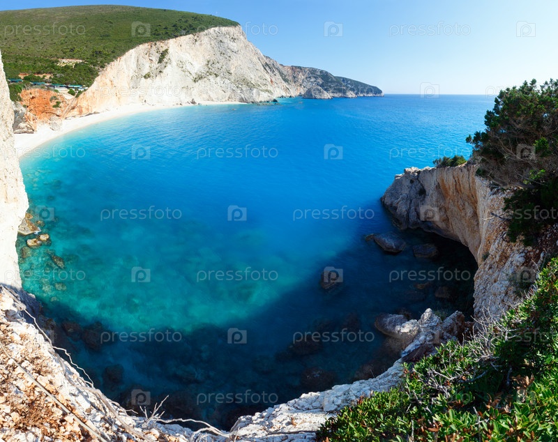 Панорама красивого летнего побережья на пляже Порто-Кацики, Ионическое море, Лефкас, Греция