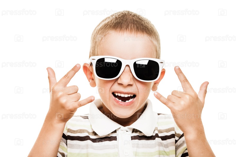 Красивый стильный мальчик в темных очках показывает руками жест поддержки или одобрения