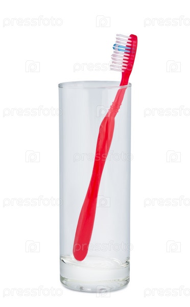 Зубная щетка в высоком стакане, изолированном на белом фоне
