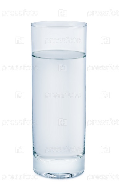 Высокий стакан с чистой водой, изолированный на белом фоне