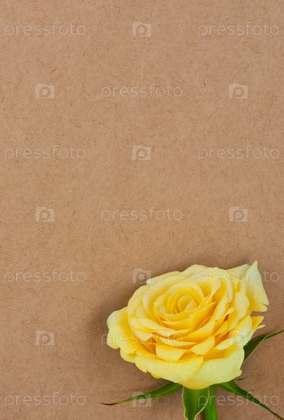Желтая роза на фоне грубой бумаги с местом для текста