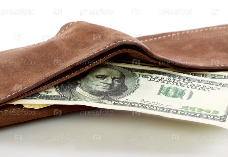 Кошелек с деньгами, изолированный на белом фоне