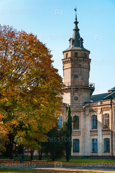 Старинное кирпичное здание в осеннем парке