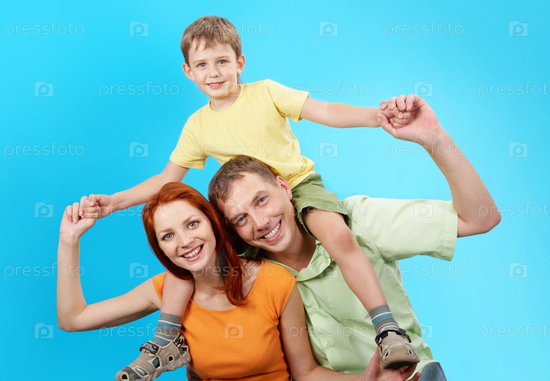 Семья на голубом фоне