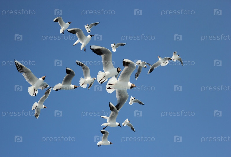 Фигура самолета из летящих чаек