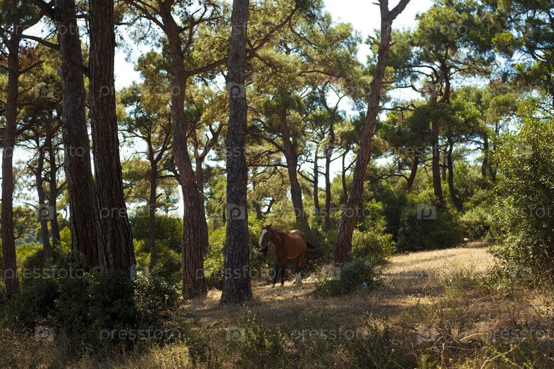 Лошадь в лесу расположенном на острове Бюйюкада, самом большом из Принцевых островов