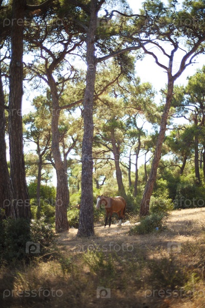 Лошадь в лесу расположенном на острове Бюйюкада, самом большом из Принцевых островов