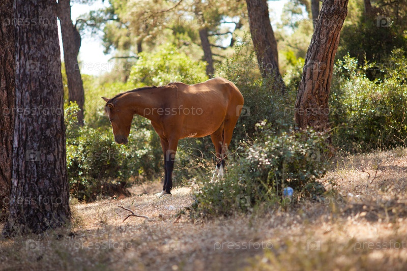 Лошадь в лесу расположенном на острове Бюйюкада, самом большом из Принцевых островов