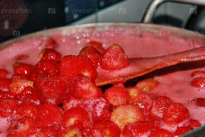 Кастрюля с клубничным вареньем