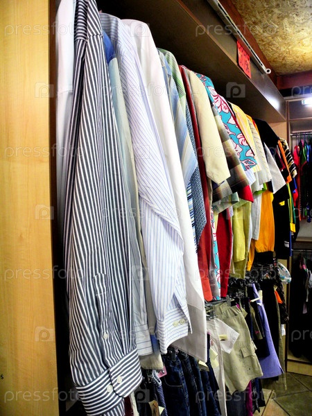Стеллажи с одеждой в магазине