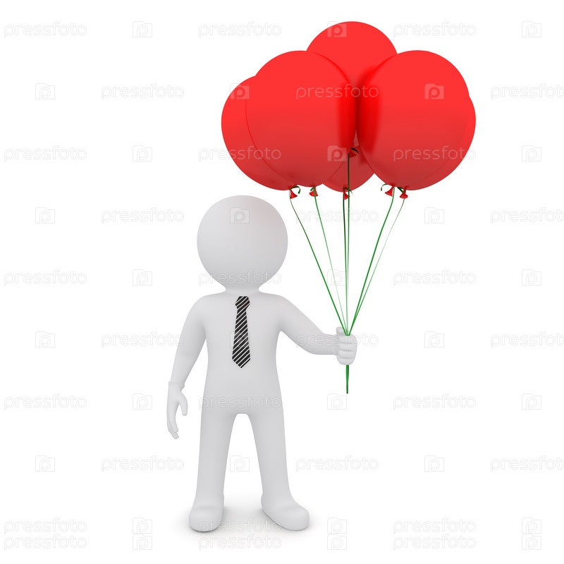 Белый человек держит красные шары на белом фоне