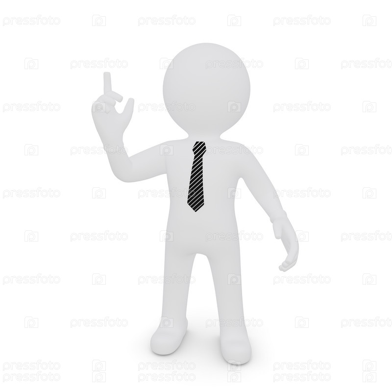 Белый человек с поднятым указательным пальцем, изолированный на белом фоне