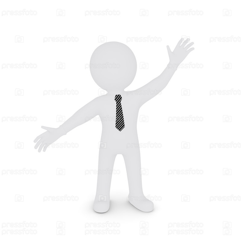 Белый человек с распростертыми по диагонали руками, изолированный на белом фоне