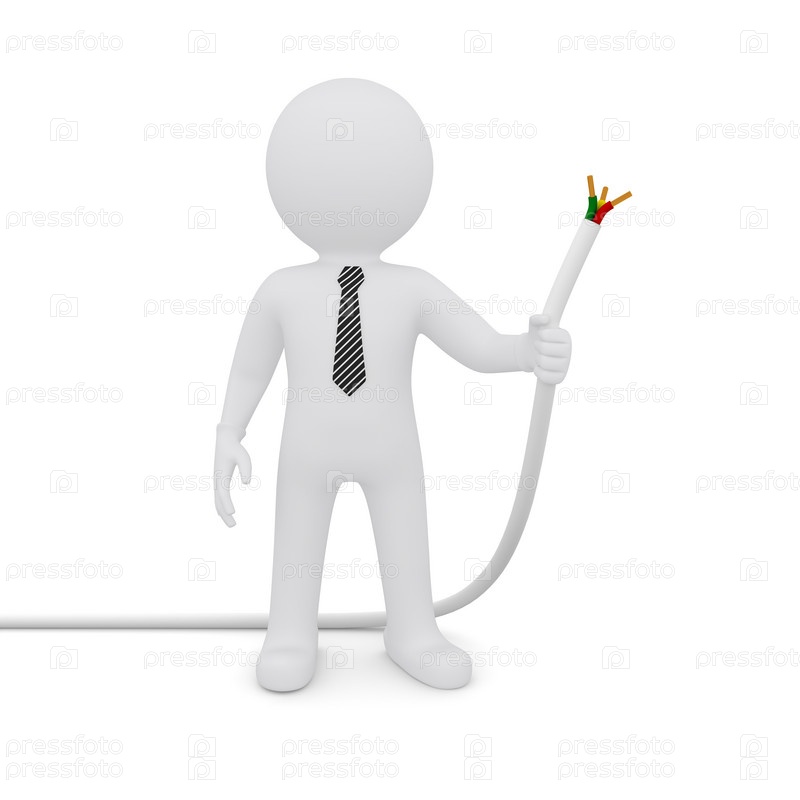 Белый человек, держащий белый шнур, изолирован на белом фоне