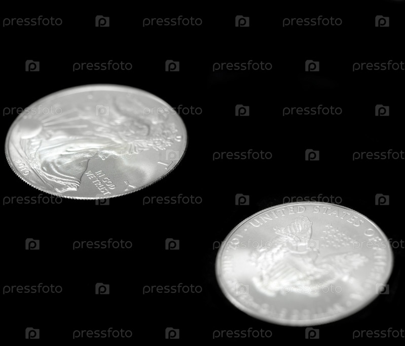 Серебрянный американский доллар над черном фоне