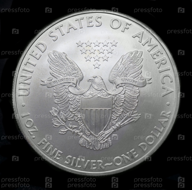 Серебрянный американский доллар над черном фоне