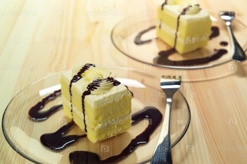 Свежее пирожное с шоколадным соусом