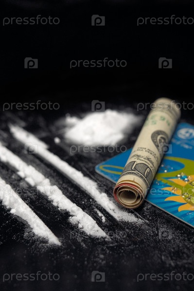 Кокаин на черном фоне. Концепция употребления наркотиков