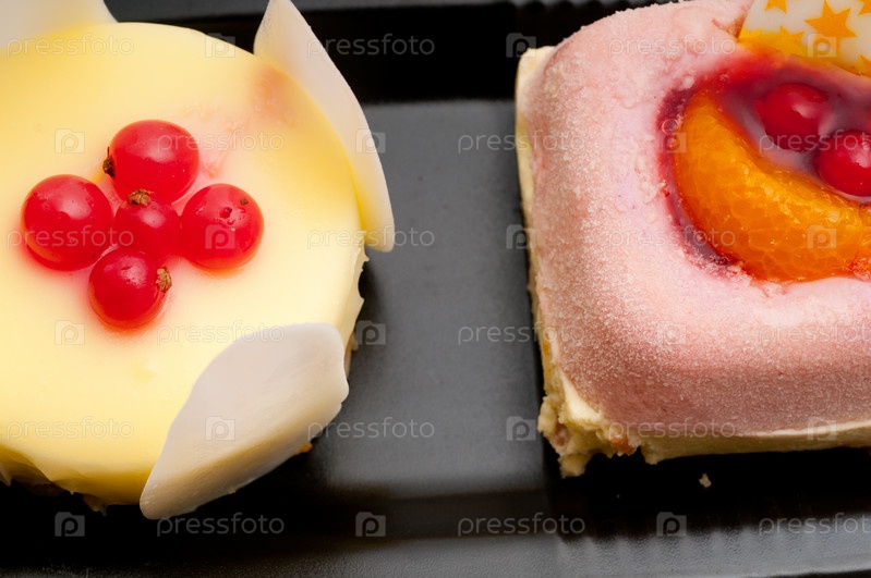 Свежее пирожное с фруктами и ягодами крупным планом
