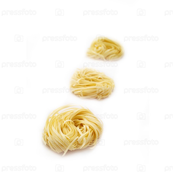 Свежие домашние итальянские макароны тальятелле на белом фоне
