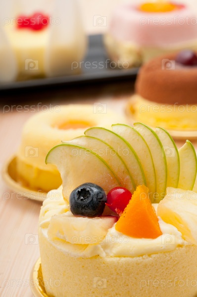 Свежее пирожное с фруктами и ягодами крупным планом
