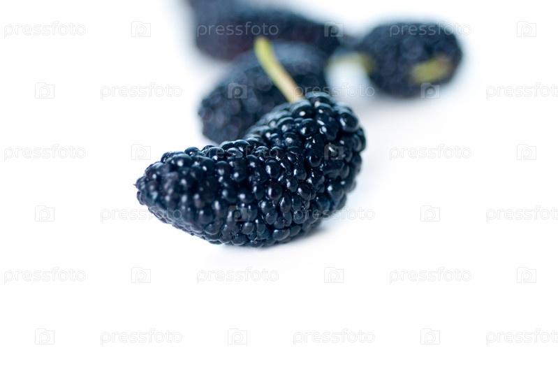Свежие спелые ягоды шелковицы крупным планом на белом фоне