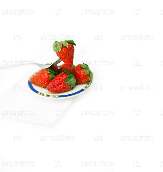 Свежая клубника на тарелке на белом фоне