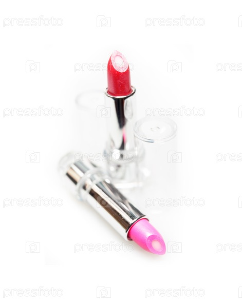 Цветной бальзам для губ крупным планом, изолированный на белом