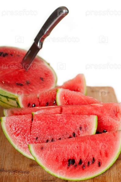 Свежий спелый нарезанный арбуз на столе