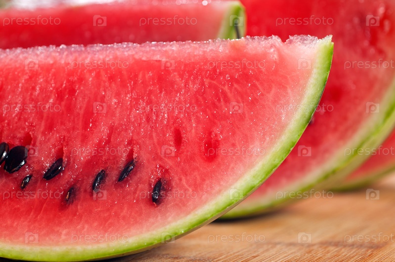 Свежий спелый нарезанный арбуз на столе