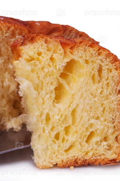 Ломтик сладкой выпечки крупным планом на белом фоне
