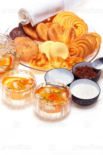 Цветочный чай крупным планом на белом фоне