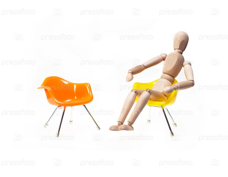 Деревянный манекен в ожидании встречи сидит на стуле