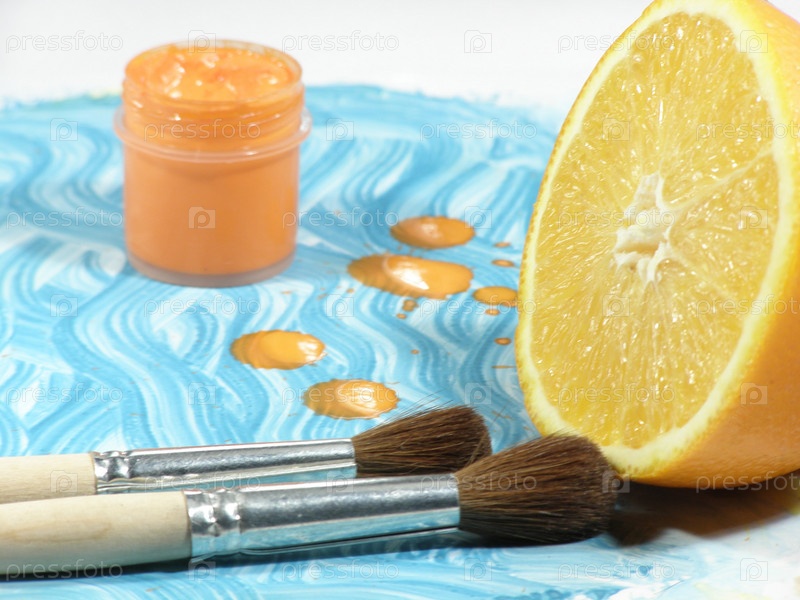 Художественные кисти и апельсин