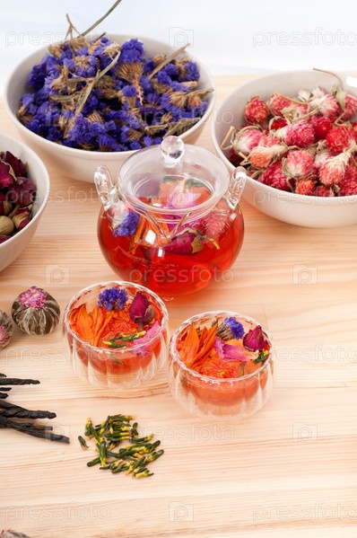 Натуральный растительный чай и сухие цветочные ингредиенты