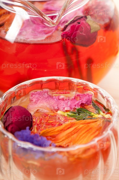 Натуральный растительный чай и сухие цветочные ингредиенты