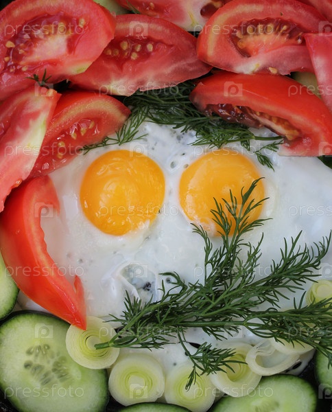Яичница-глазунья с овощами и зеленью