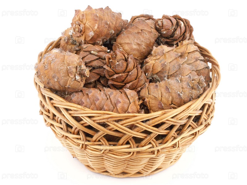 Шишки в плетеной корзине