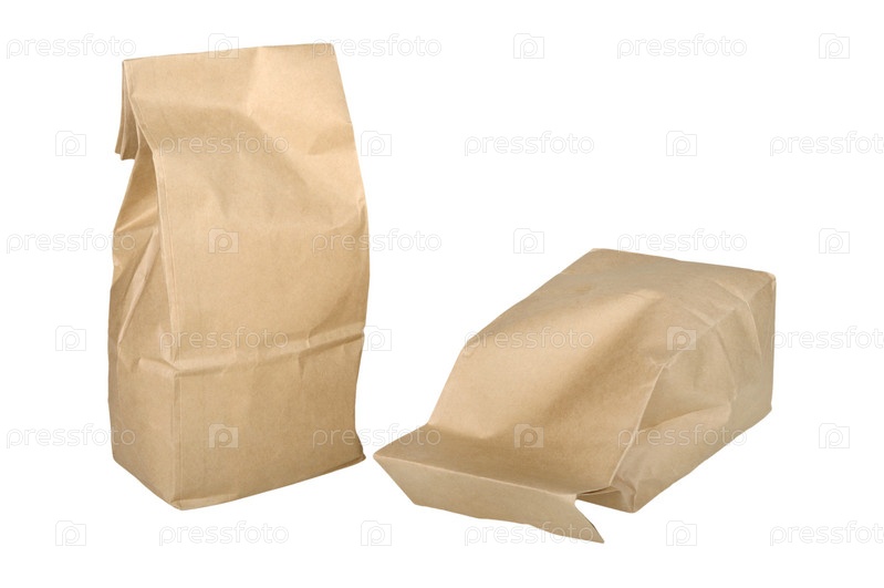 Два бумажных пакета, изолированных на белом фоне