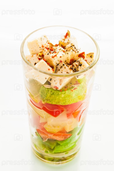 Салат - веррин из молодых цуккини, томатов, сладкого перца, фасоли, сельдерея и брынзы