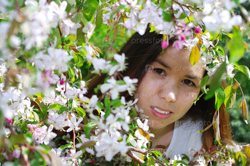 Портрет красивой девушки среди цветов