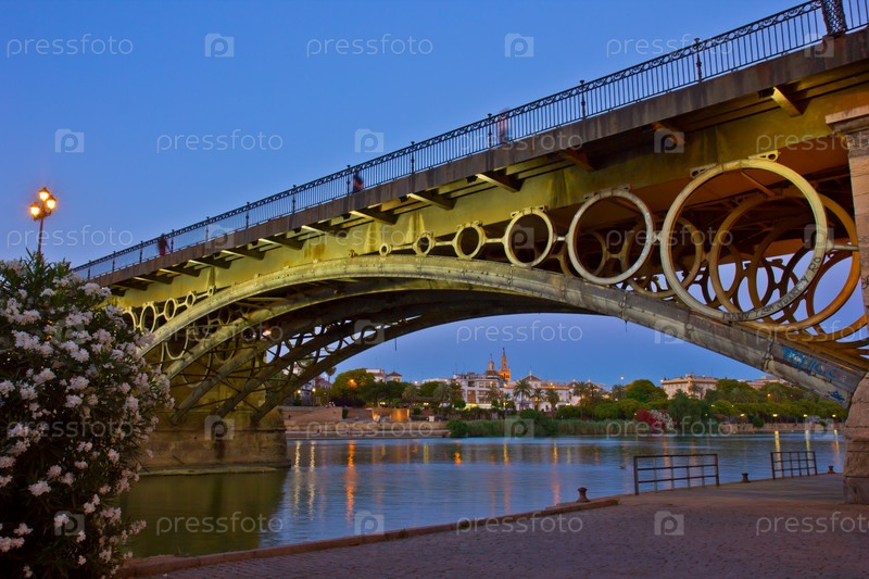 Мост Триана и город на берегу реки в ночное время, Испания