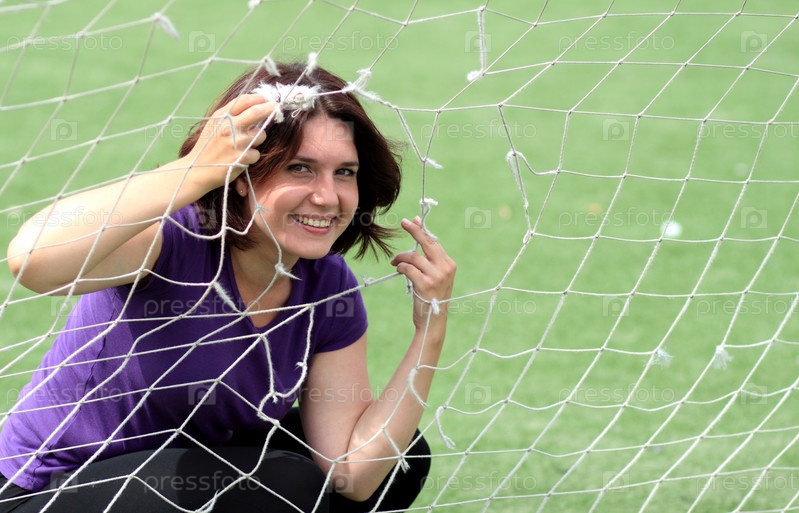 Красивая спортивная женщина за сеткой