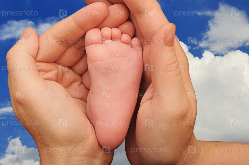 Нога новорожденного ребенка в материнских руках крупным планом