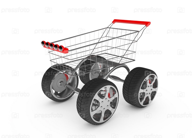 Корзина с большими колесами на белом фоне