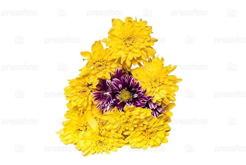 Красивые свежие желтые и фиолетовые цветы на белом фоне