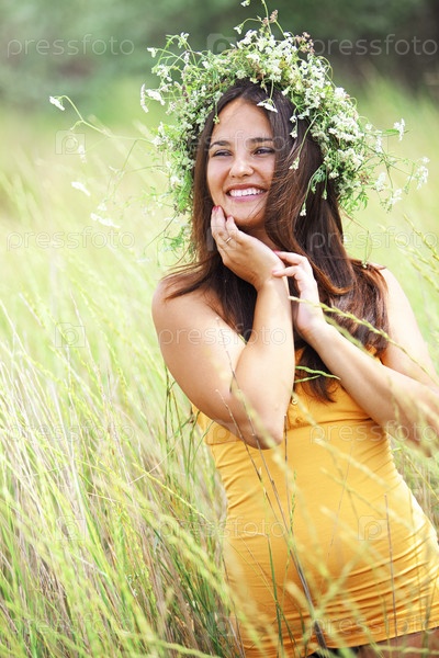Молодая женщина в цветочном венке на открытом воздухе