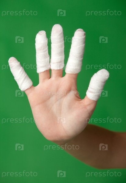 Пальцы в повязке на зеленом фоне