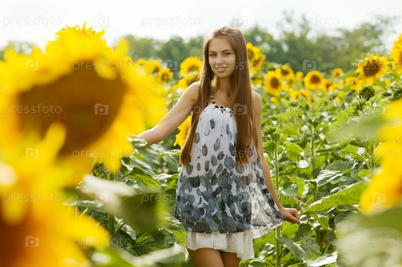 Красивая девушка на поле подсолнухов