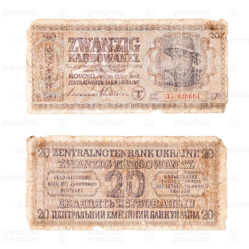 Старые деньги, банкноты центрального банка Украины, 1942 год, изолированные на белом фоне